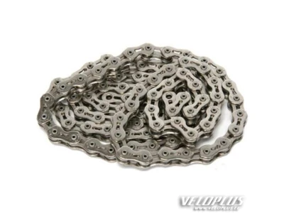 1/2" X 1/8" Pin Length: 9.5 mm 100 Links Weight: Super Light, 349 grams Color: Silver Kool Chain Super Light Nickel Plated For single speed, internal gear, BMX, Track and Fixed gear