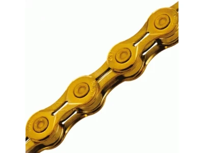 262g 1/2” X 11/128” - 114 Links pin length 5,88 mm Compatible with: any 10-speed derailleur system Titanium Nitride Gold coated NON-Directional* Top-Performance Double X-Durability