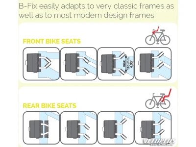 Jalgratta juhtraua ja sadula vahele jääv lastetool, millel tänapäevase linnaratta 28-45mm diameetriga kaelakausile sobiv B-FIX kinniti. B-FIX kinniti sobib kasutamiseks ka sadulapostitorul, ent mitte antud tool. Toolile võimalik ette paigaldada turvakäepide, millest laps saab sõidu ajal kinni hoida. NB! Kaalupiirang kuni 15 kg ehk sobib kuni 3-aastase lapse sõidutamiseks. Selle tooliga sõidab laps sinu ees, niiviisi saad tal pilgu pidevalt peal hoida. Soovituslik min 600 mm lai juhtraud. 1 Non-toxic certified plastic frame, lightweight, resistant and washable. 2 Soft washable cushion. 3 Ventilation openings located at shoulders and back. 4 Parent-friendly safety buckle - can be fastened and unfastened with just one hand. 5 Broad footrests height settings range: 11 cm - 4.4” (11 positions). 6 Length adjustable harness. 7 Comfortable, spacious seat area. 8 High sideboards to increase child support and containment. 9 Pratical large ergonomic handle that provides additional protection for your child and makes the journey more enjoyable. 10 Ample legs/feet side protection