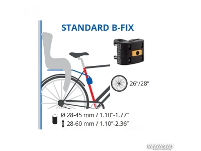 Jalgrattaraami sadulatoru külge kinnituv lastetool. Saab hetkega eemaldada ja paigaldada rattaraamile komplektis oleva B-FIX kinnitiga, mis müügil ka eraldi 29€-ga (nt teisele rattale).