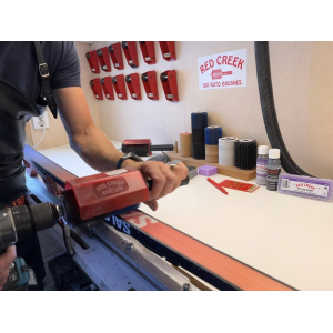 RED CREEK rotoharja käepide on loodud 140 mm kombi-harjadele, pakkudes professionaalset lahendust murdmaasuuskade hooldamisel. Kuusnurkse võlliga premium-klassi konstruktsioon tagab kindla haarde ja sujuva jõuülekande trellilt harjale. Mugav kummist käepide lisab stabiilsust ning pleksiklaasist kaitse aitab hoida tööala puhtana, vähendades parafiiniosakeste ja harjakiudude lendumist.